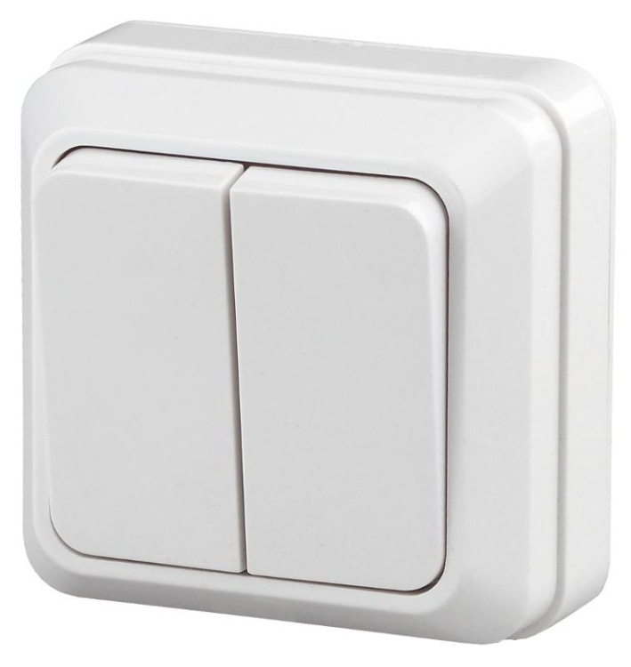 Выключатель Intro Quadro 2-104-01 двухклавишный 10А-250В, IP20, ОУ, белый | Б0053757 | Intro