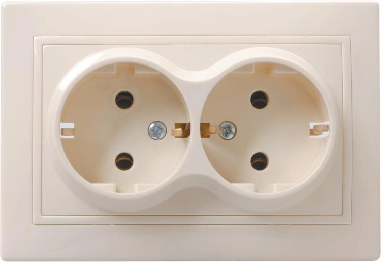 КВАРТА Кремовый Розетка 2-местная керамическая с заземлением 16А РС12-3-Км | ERK21-K33-16-K | GENERI