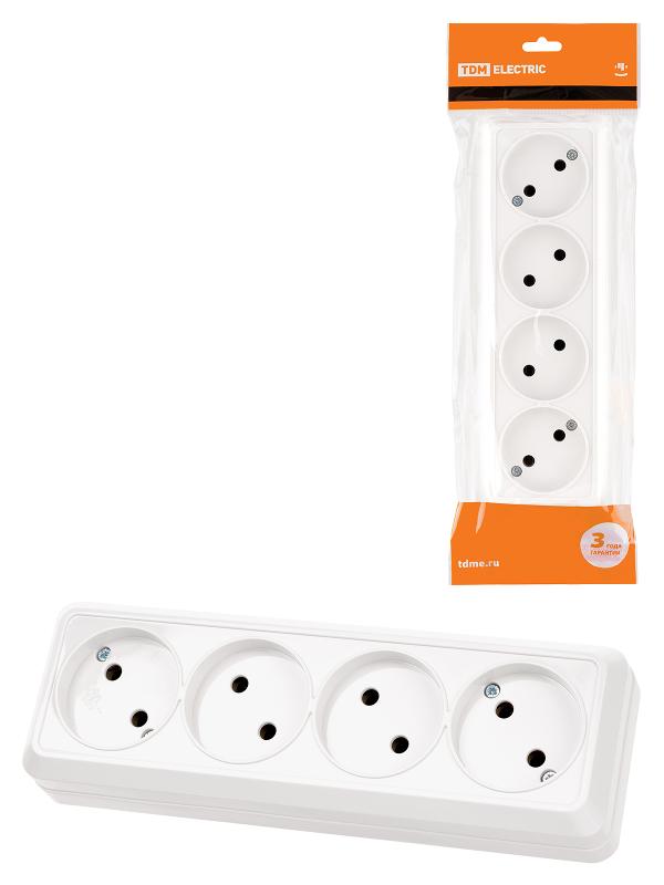 Розетка 4-х местная горизонтальная 2П открытой установки IP20 10A белая "Ладога" | SQ1801-0128 | TDM