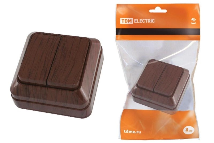 Выключатель 2-кл. открытой установки IP20 10А, бук "Ладога" | SQ1801-0028 | TDM