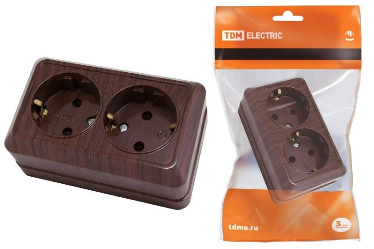 Розетка двойная 2П+3 открытой установки IP20 16А 250В (керамика) бук "Ладога" | SQ1801-0313 | TDM