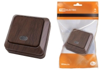 Переключатель на 2 направления 1-кл. открытой установки с подсветкой IP20 10А, бук "Ладога" | SQ180