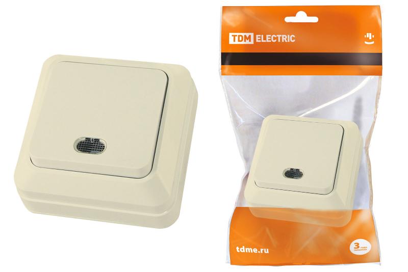Выключатель 1-кл. открытой установки с подсветкой IP20 10А, сл. кость "Ладога" | SQ1801-0010 | TDM