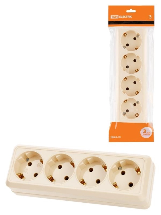 Розетка 4-х местная горизонтальная 2П+3 открытой установки IP20 16A сл. кость "Ладога" | SQ1801-0230