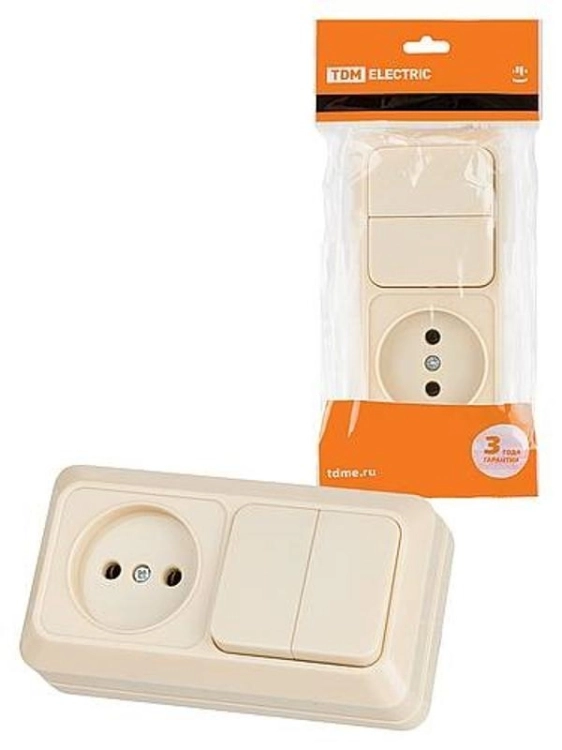 Блок комбинированный выкл. 2-кл. 10А + розетка 2П 10А 250В БКВР IP20 сл. кость "Ладога" | SQ1801-02