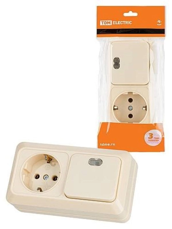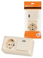 Блок комбинированный выкл. 1-кл. с/п 10А + розетка 2П+З 16А 250В БКВР IP20 сл. кость "Ладога" | SQ1