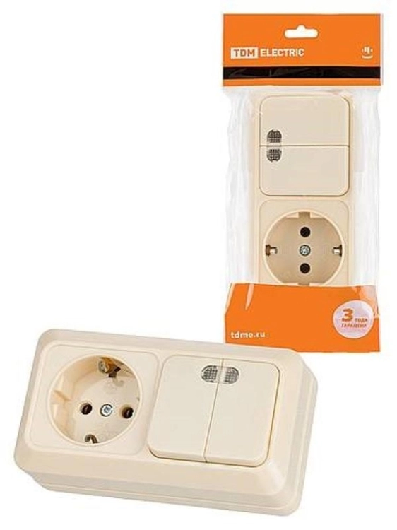 Блок комбинированный выкл. 2-кл. с/п 10А + розетка 2П+З 16А 250В БКВР IP20 сл. кость "Ладога" | SQ1