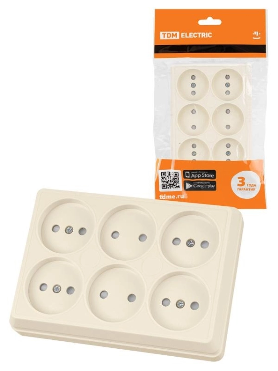 Розетка шестиместная 2П открытой установки IP20 10А с защитными шторками сл. кость "Ладога" | SQ1801