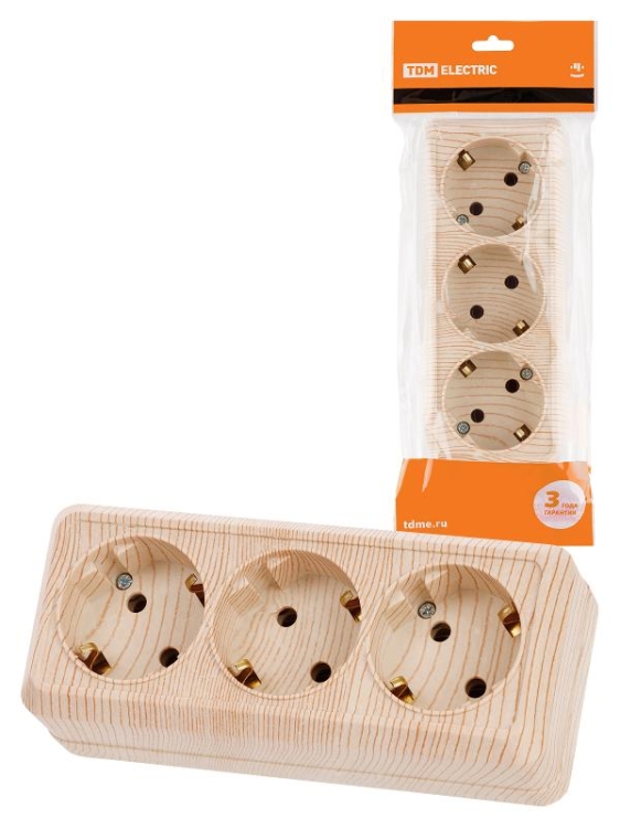 Розетка 3-х местная горизонтальная 2П+3 открытой установки IP20 16A сосна "Ладога" | SQ1801-0426 | T
