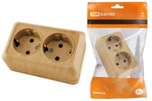 Розетка двойная 2П+3 открытой установки IP20 16А 250В (керамика) сосна "Ладога" | SQ1801-0413 | TDM