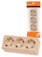 Розетка 3-х местная горизонтальная 2П+3 открытой установки IP20 16A с з/ш сосна "Ладога" | SQ1801-04