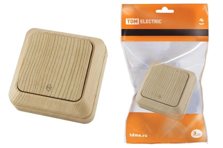 Переключатель на 2 направления 1-кл. открытой установки IP20 10А, сосна "Ладога" | SQ1801-0045 | TD
