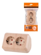 Розетка угловая двойная 2П+3 открытой установки с з/ш IP20 250В 16А сосна "Ладога" | SQ1801-0443 | T