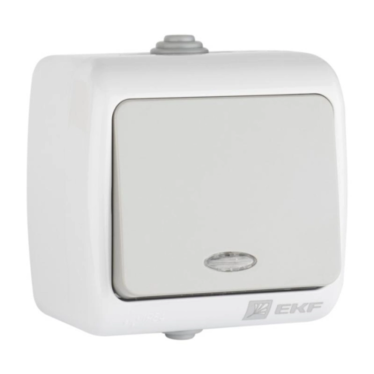 Мурманск Выключатель 1 -клавишный с индикатором 10А IP54 серый EKF | EFV10-121-30-54 | EKF