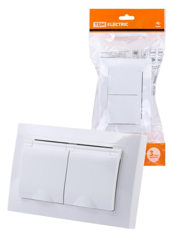 Розетка двойная 2П+З с защ. шт. и крышкой 16А 250В IP44 белая "Таймыр" | SQ1814-0076 | TDM