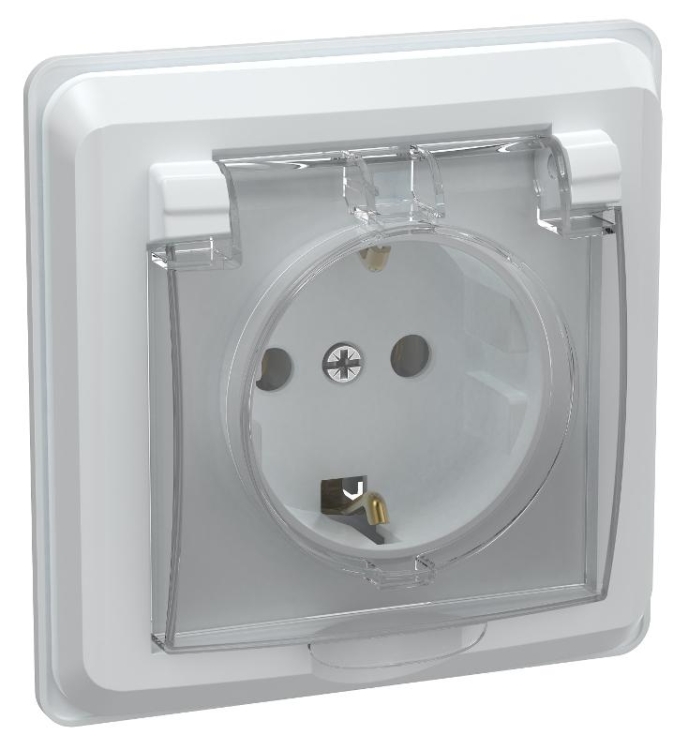 ВЕГА белый Розетка 1-местная с/з со шторками с крышкой 16А РСбш10-3-ВБ IP44 | ERV16-K01-16-DM | GENE