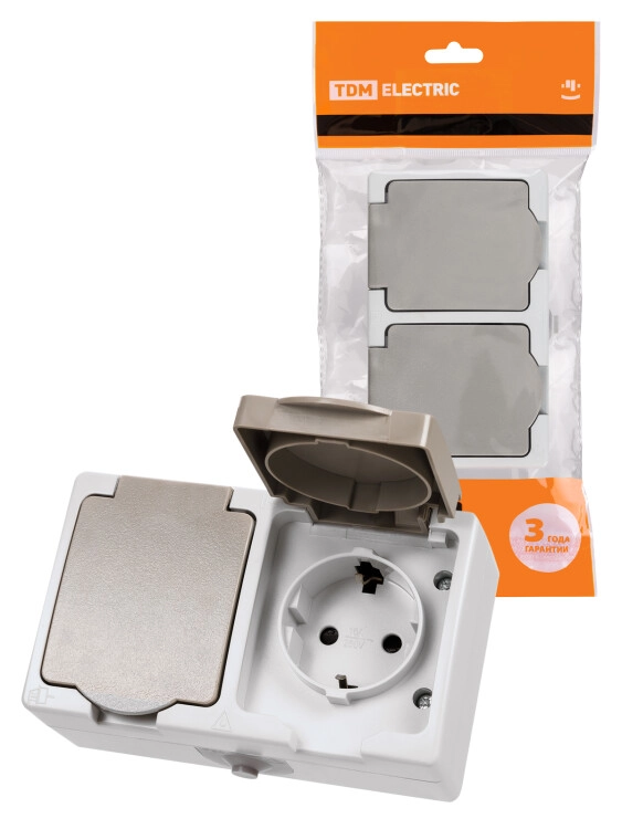 Розетка двойная 2П+3 (горизонтальная) открытой установки IP54 16А "Вуокса" | SQ1803-0008 | TDM