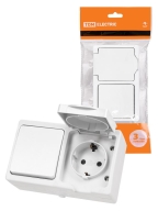 Блок (горизонтальный) выключатель 1-кл. + розетка 2П+З с з/ш БКВР IP54 белый "Вуокса" | SQ1803-1010