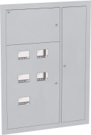В вводно-учетном и распределительном отсеках в корпусах ЩЭ-Х-1 размещены перфорированные планки для крепления счетчиков (по количеству квартир), в корпусах ЩЭ-Х-6 установлена съемная монтажная панель. В вводно-учетном и распределительном отсеках размещены перфорированные планки для крепления счетчиков (по количеству квартир). Предусмотрена возможность установки в этом же отсеке аппарата отключения магистральной линии.