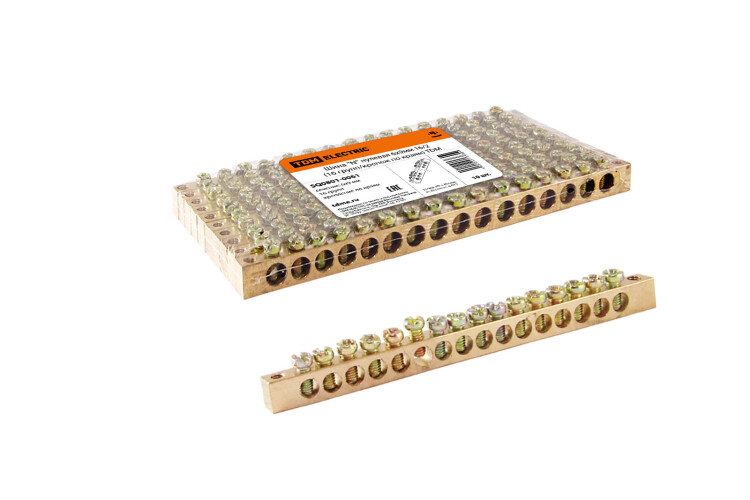 Шина "N" нулевая 6х9мм 16/2 (16 групп/крепеж по краям) | SQ0801-0061 | TDM