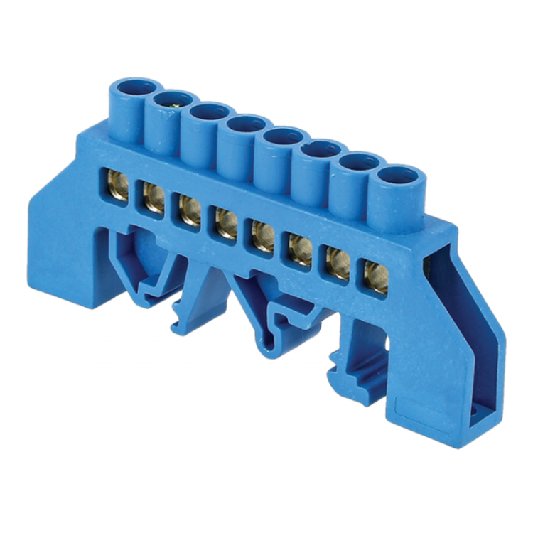 Шина "0" (8х12мм.) 125А 8 отверстий нейлон. корп. на DIN-рейку латунь синий EKF PROxima | sn0-125-8-