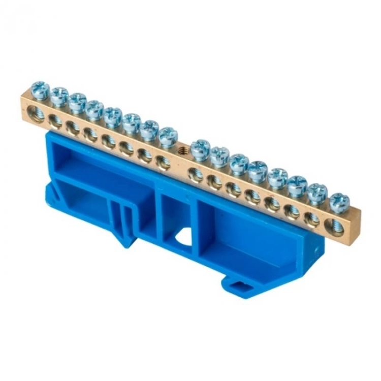 Шина "0" N (6х9мм) 16 отверстий латунь синий изолятор на DIN-рейку EKF PROxima | sn0-63-16-d | EKF