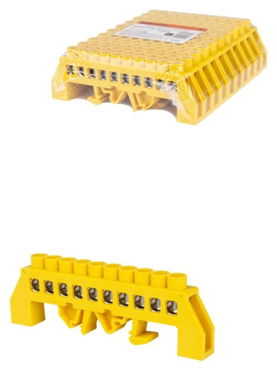 Шина "PE" "земля" в желтом изоляторе на DIN-рейку 8x12мм 10 групп | SQ0801-0216 | TDM