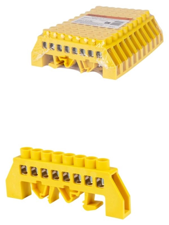Шина "PE" "земля" в желтом изоляторе на DIN-рейку 8x12мм 8 групп | SQ0801-0215 | TDM