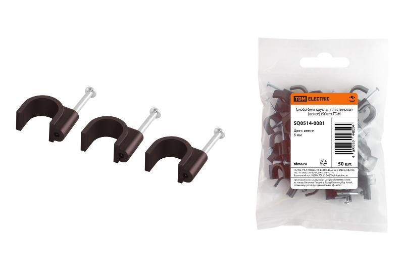 Скоба 6мм круглая пластиковая (венге) (50шт) | SQ0514-0081 | TDM
