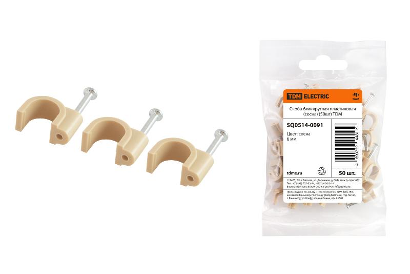 Скоба 6мм круглая пластиковая (сосна) (50шт) | SQ0514-0091 | TDM