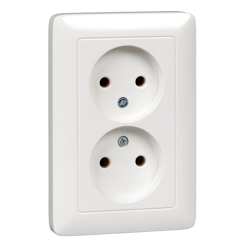Хит Белый С/У Розетка 2-ая без заземления без шторок, 16А, 250В | RS16-235-B | SE