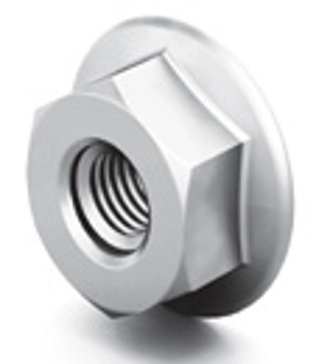 Гайка М6 DIN 6923 со стопорным буртиком, класс прочности 8, гальван. цинк (в упаковке 100 шт), 06760