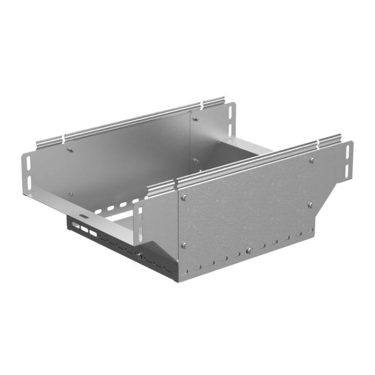 Применяется для обеспечения полноразмерного ответвления горизонтальной кабеленесущей системы из лотков металлических в вертикальном направлении. В комплект не входит крышка.