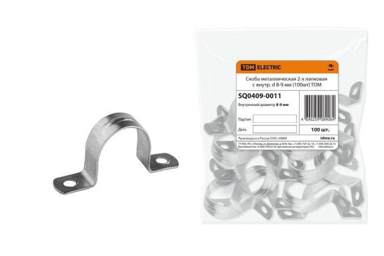 Скоба металлическая 2-х лапковая СМД с внутр. d 8-9 мм (100шт) | SQ0409-0011 | TDM