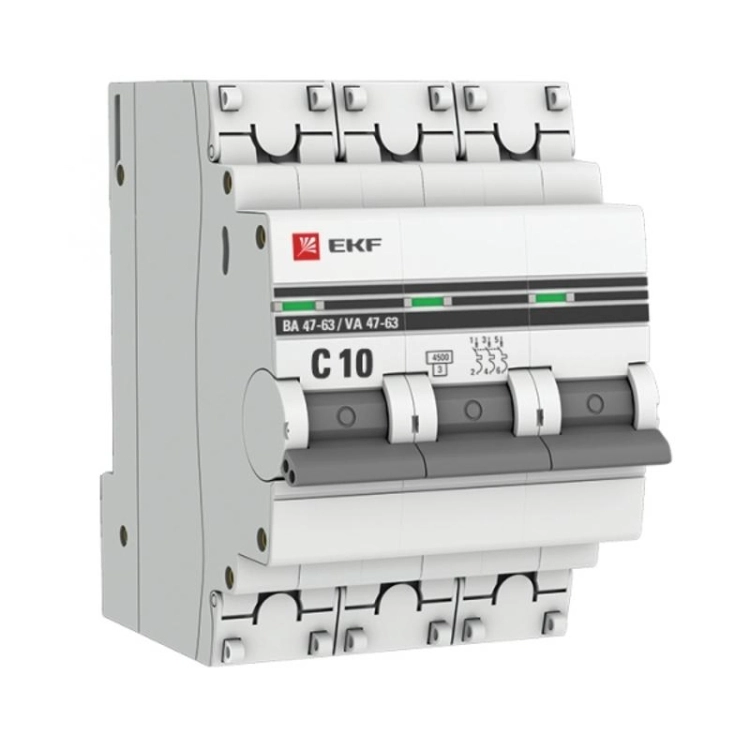 Выключатель автоматический трехполюсный ВА 47-63 10А C 4,5кА PROxima | mcb4763-3-10C-pro | EKF (заме