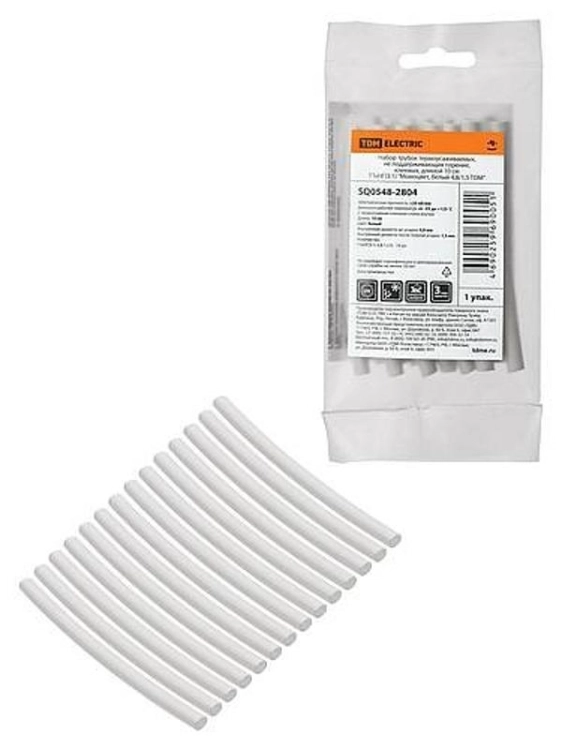 Набор трубок термоусаживаемых, не поддерживающих горение, клеевых, длиной 10 см ТТкНГ(3:1) "Моноцвет, белый 4,8/1,5 " | SQ0548-2804 | TDM