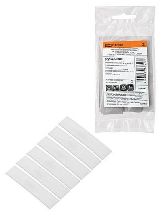 Набор трубок термоусаживаемых, не поддерживающих горение, клеевых, длиной 10 см ТТкНГ(3:1) "Моноцвет, белый 12,7/4,3 " | SQ0548-2808 | TDM