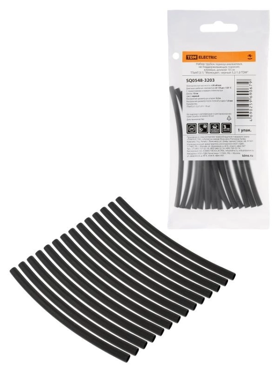Набор трубок термоусаживаемых, клеевых "Моноцвет, черный 3,2/1,0 " | SQ0548-3203 | TDM