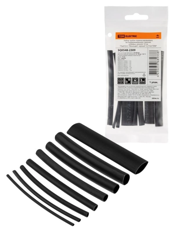 Набор трубок термоусаживаемых, клеевых "Моноцвет-диапазон, черный " | SQ0548-2309 | TDM