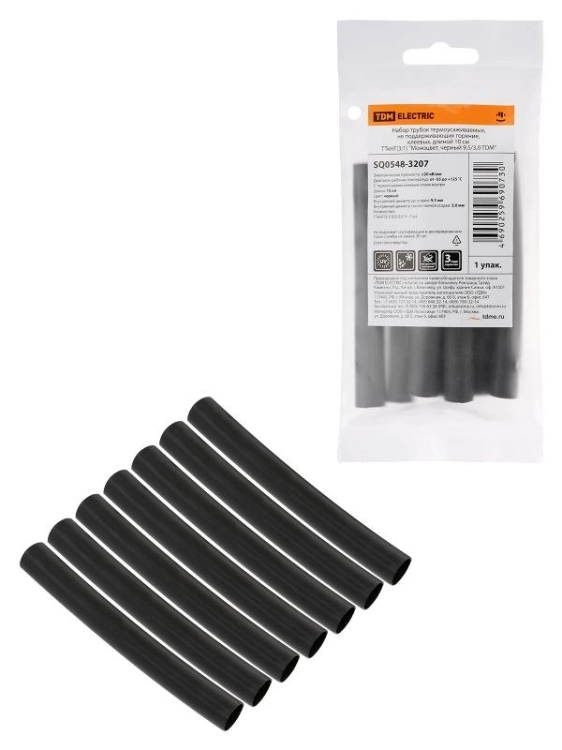 Набор трубок термоусаживаемых, клеевых "Моноцвет, черный 9,5/3,0 " | SQ0548-3207 | TDM