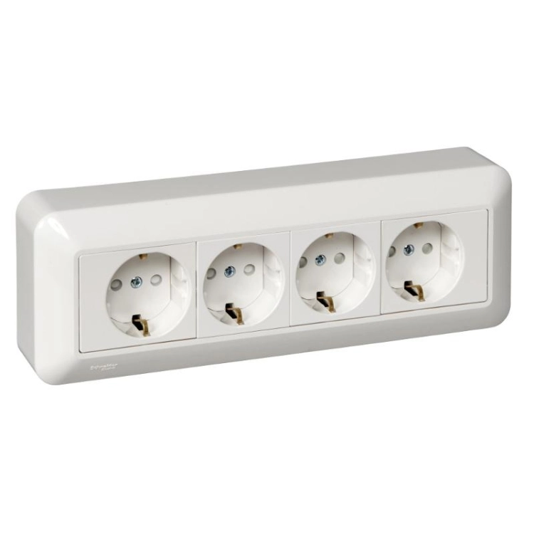 Blanca Белый О/У Розетка 4-я с заземлением с защитными шторками 16А, монтажная пластина (в сборе) (и