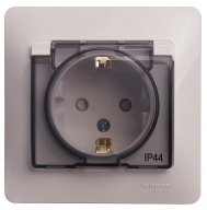 Glossa Белый Розетка с заземлением со шторками с крышкой, IP44 (в сборе с рамкой) | GSL000148 | SE