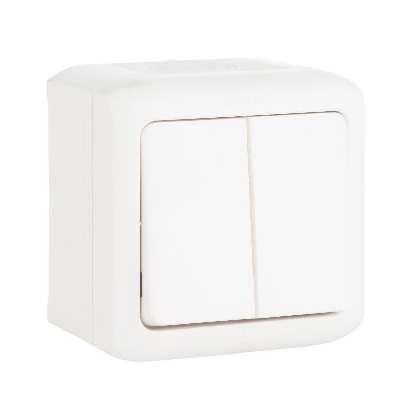 Quteo Белый Выключатель 2-клавишный IP44 10А | 782302 | Legrand