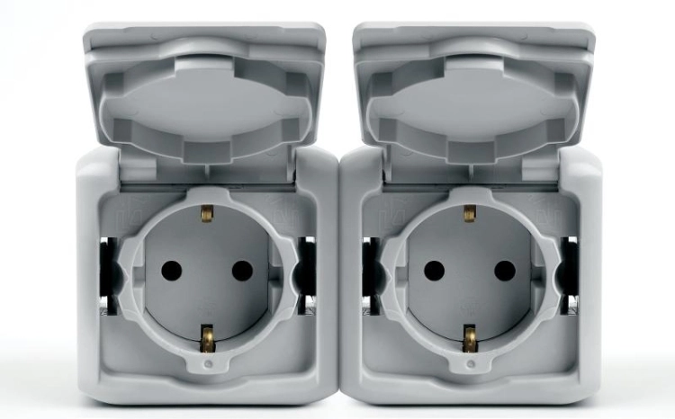 Quteo Серый Розетка 2-я с заземлением со шторками IP44 | 782353 | Legrand