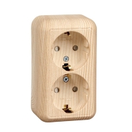 ПРИМА О/У Сосна Розетка 2-ая с/з с защитными шторками 16А, с изолир. пластиной (в сборе) (индивид.уп