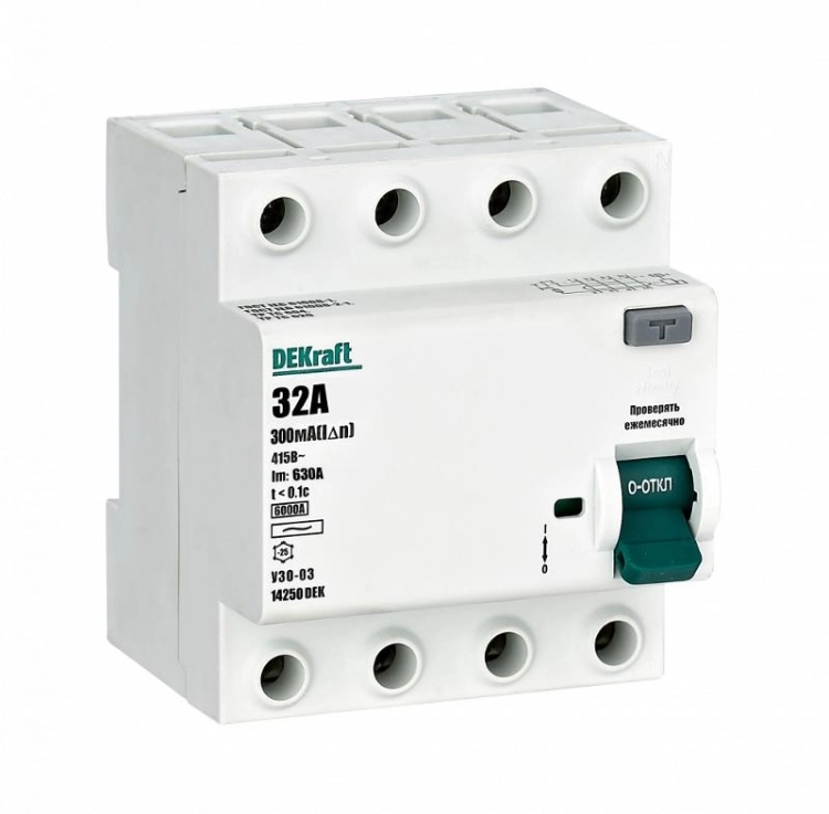 Выключатель дифференциальный (УЗО) УЗО-03 4п 32А 300мА тип AC 6кА | 14250DEK | DEKraft