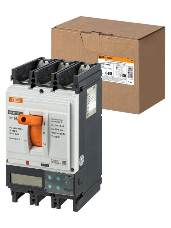 Автоматический выключатель ВА89-37 3Р 630А 70кА (ЭР-ЖК дисплей) с модулем связи RS-485 МС1 | SQ0751-