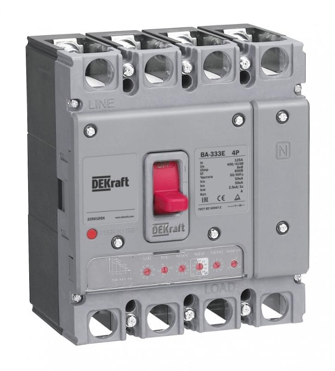 Силовой авт. выкл. с электрон. расц. 4P 63А 50кА ВА-333E | 22495DEK | DEKraft