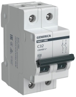 Выключатель автоматический двухполюсный ВА47-29М 2P 32А 4,5кА C |MVA21-2-032-C-G| GENERICA