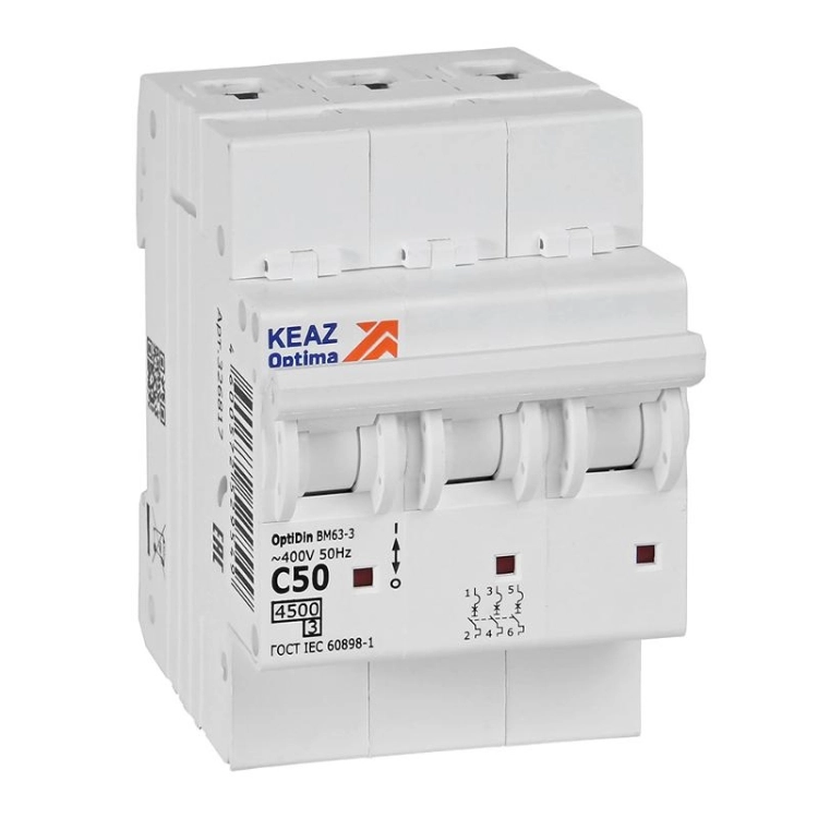 Выключатель автоматический трехполюсный OptiDin BM63-3C50-4,5-УХЛ3 | 326817 | КЭАЗ